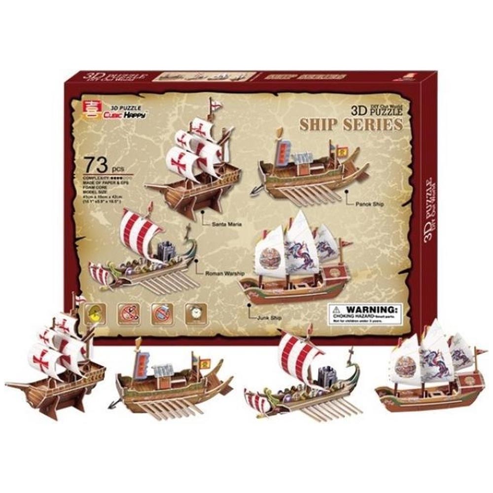 Leuke puzzel set van 4 piratenschepen die alle vier bij elkaar uit totaal 73 delen bestaan. Een schaar en lijm zijn niet nodig voor de bouw van deze schepen. Tijden het maken worden concentratievermogen, logisch nadenken en technische vaardigheden op de proef gesteld.