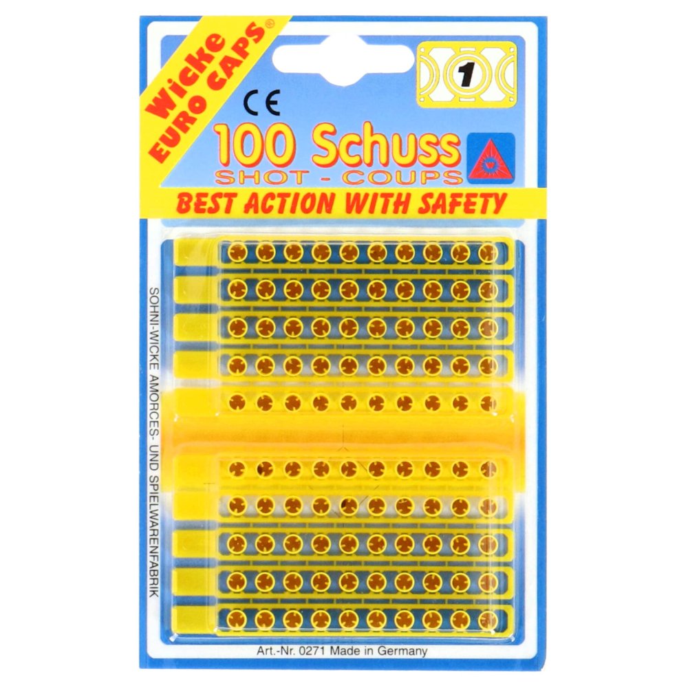 Amorces Strip 100 Schots Op Blister. Hervul je klappertjespistool met deze bijvulling, goed voor wel 100 schoten! Geschikt voor kinderen vanaf 6 jaar.