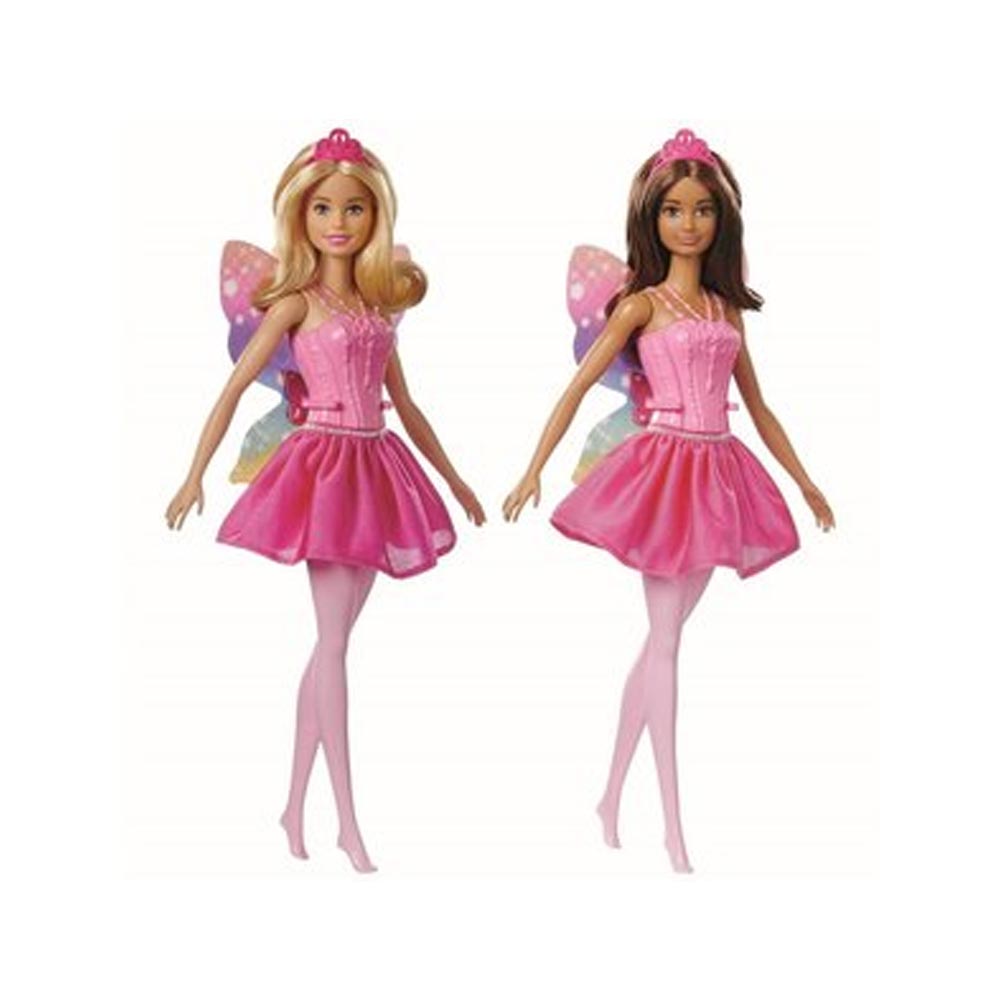 De Barbiepoppen helpen de verbeelding de vrije loop te laten met prinses-fee-looks. De poppen hebben een paar felgekleurde regenboog vleugels met sterrenpatroon en een tiara voor het echte prinsessen gevoel.