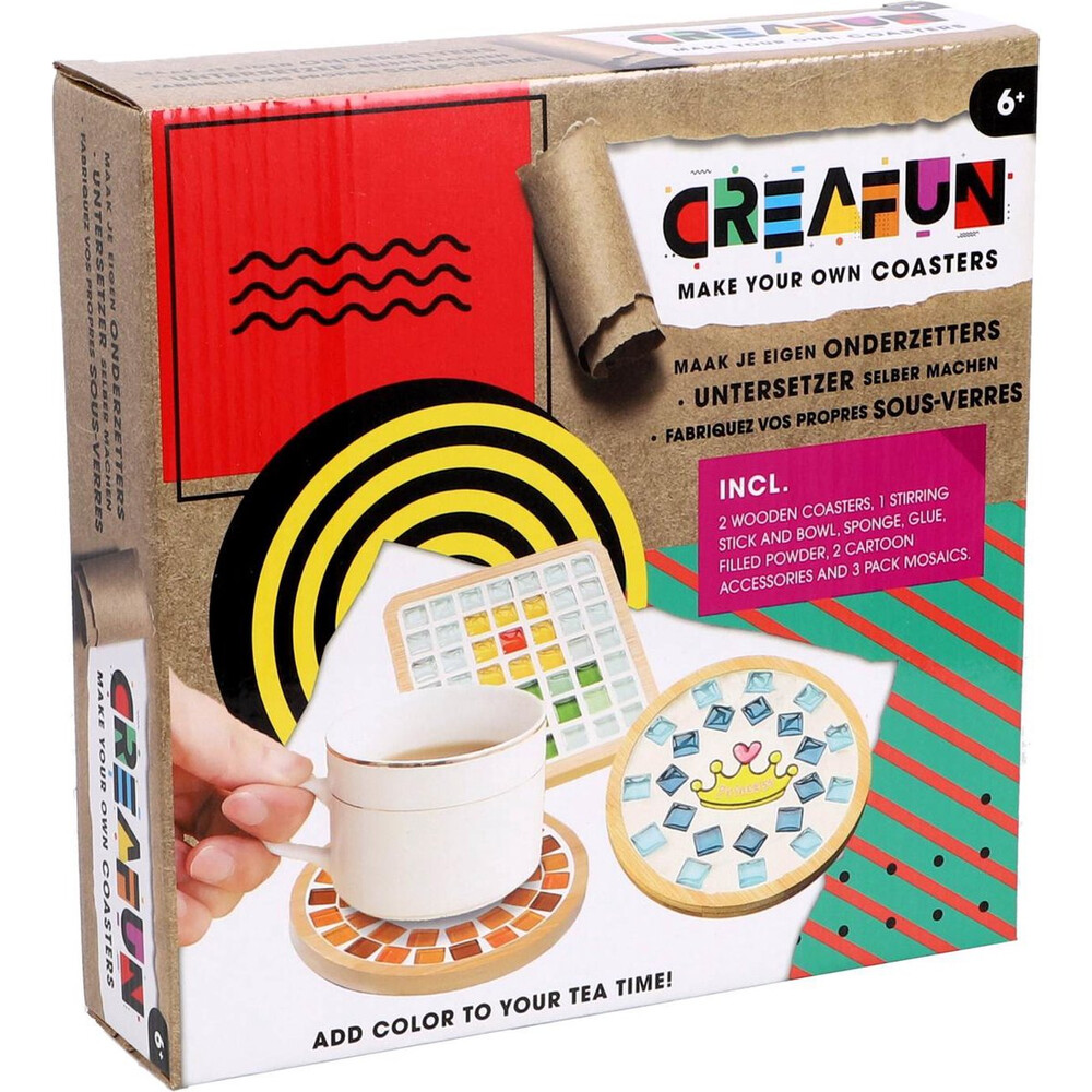 Met de Creafun Hobbyset maak je eenvoudig je eigen onderzetters. Dit kleurrijke DIY-pakket is perfect voor gezinnen en zorgt voor uren creatief plezier. De set is geschikt voor kinderen vanaf 6 jaar en helpt bij het ontwikkelen van hun creativiteit en motorische vaardigheden.