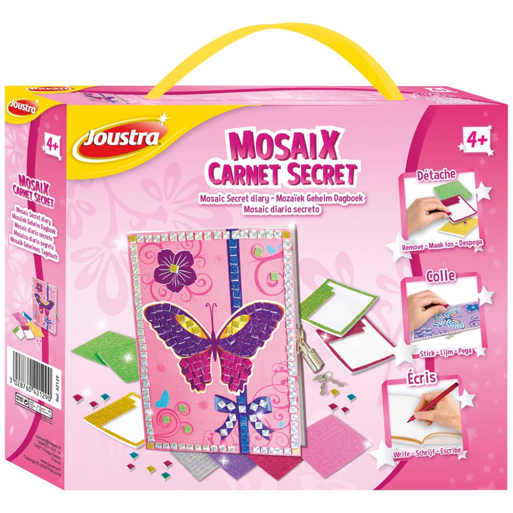 Met deze set kan jij je eigen dagboek versieren! Plak de mozaïeksteentjes waar je wilt op de kaft, precies in jouw stijl! Daarna kan je een pen pakken om er lekker in te schrijven. Schrijf elke dag op wat je beleeft, wat je denkt en wat je bezighoudt. Sluit hem daarna af met het handige slotje zodat niemand erin kan lezen!