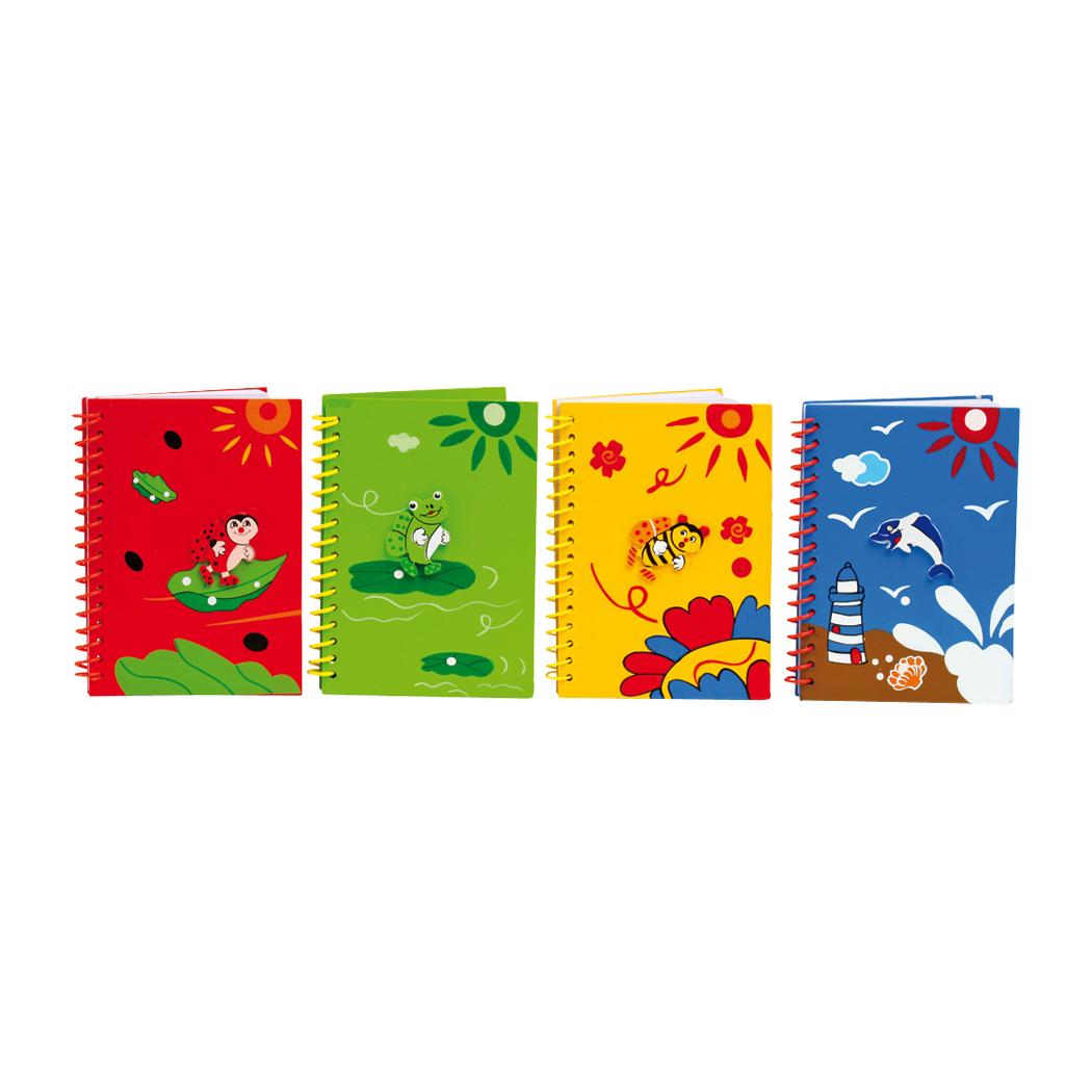 Een set van 4 fraaie en kleurrijke notitieboekjes. Alle notitieboekjes zijn voorzien van een ringband met circa 40 pagina’s. Ideaal om allerlei notities in te noteren. De kaften van de notitieboekjes zijn gemaakt van een hoogwaardige kwaliteit hout en zijn uitgerust met de kleuren rood, groen, geel en blauw.