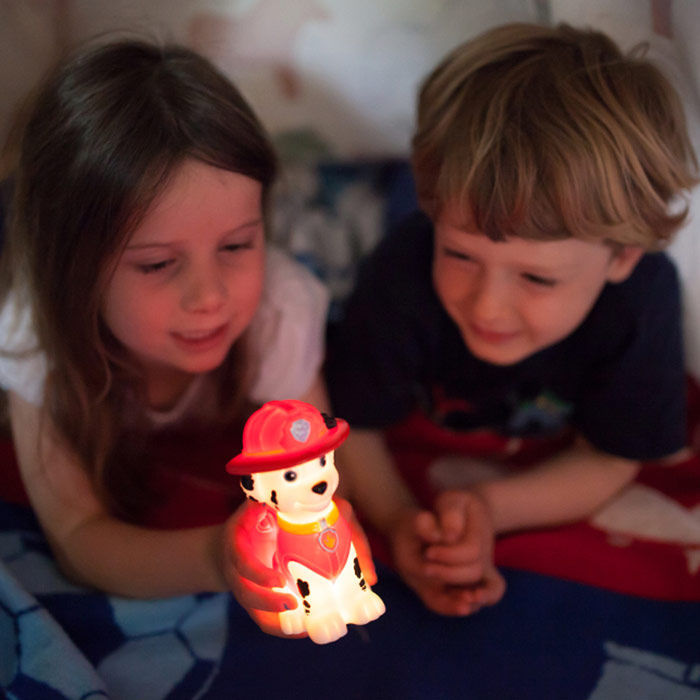 Met dit originele Paw Patrol LED nachtlampje is het nooit meer helemaal donker op je slaapkamer en hoef je niet meer bang te zijn in het donker. Het nachtlampje hebben we in drie verschillende Paw Patrol figuren: Rubble, Chase en Marshall. Met dit Paw Patrol lampje val je zo in slaap! Het lampje heeft een afmeting van 6.5 x 9.5CM en is 12,5 centimeter hoog. Het lampje is voorzien van moderne technologie waardoor hij zorgt voor een mooi glow effect en wisselt in 4 verschillende kleuren. Het lampje wordt geleverd inclusief 3 x LR44 batterijen met een levensduur van ongeveer 10 uur.