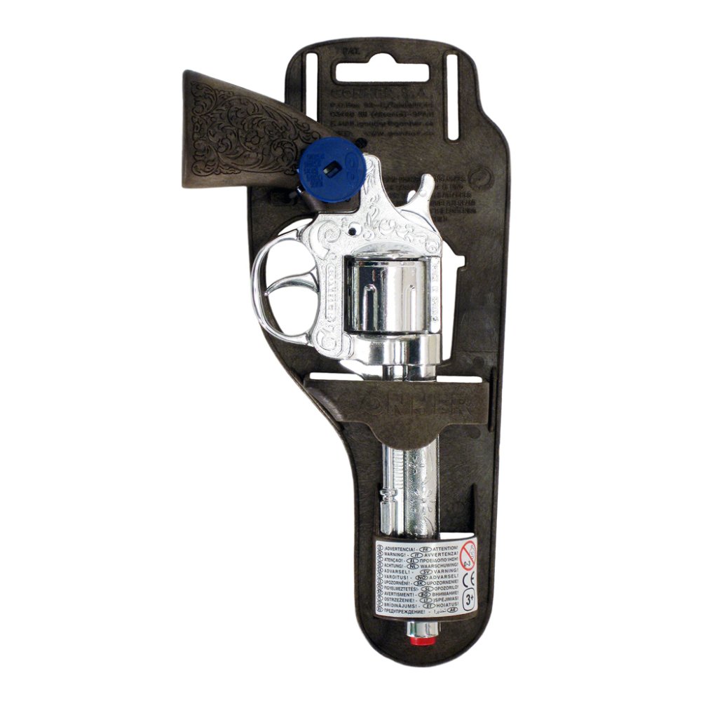 Met dit pistool kun jij de spannendste wildwestgevechten houden! Doe alsof je een cowboy bent en trek het pistool in een duel als eerste! Afmetingen: 20x8x2 cm.