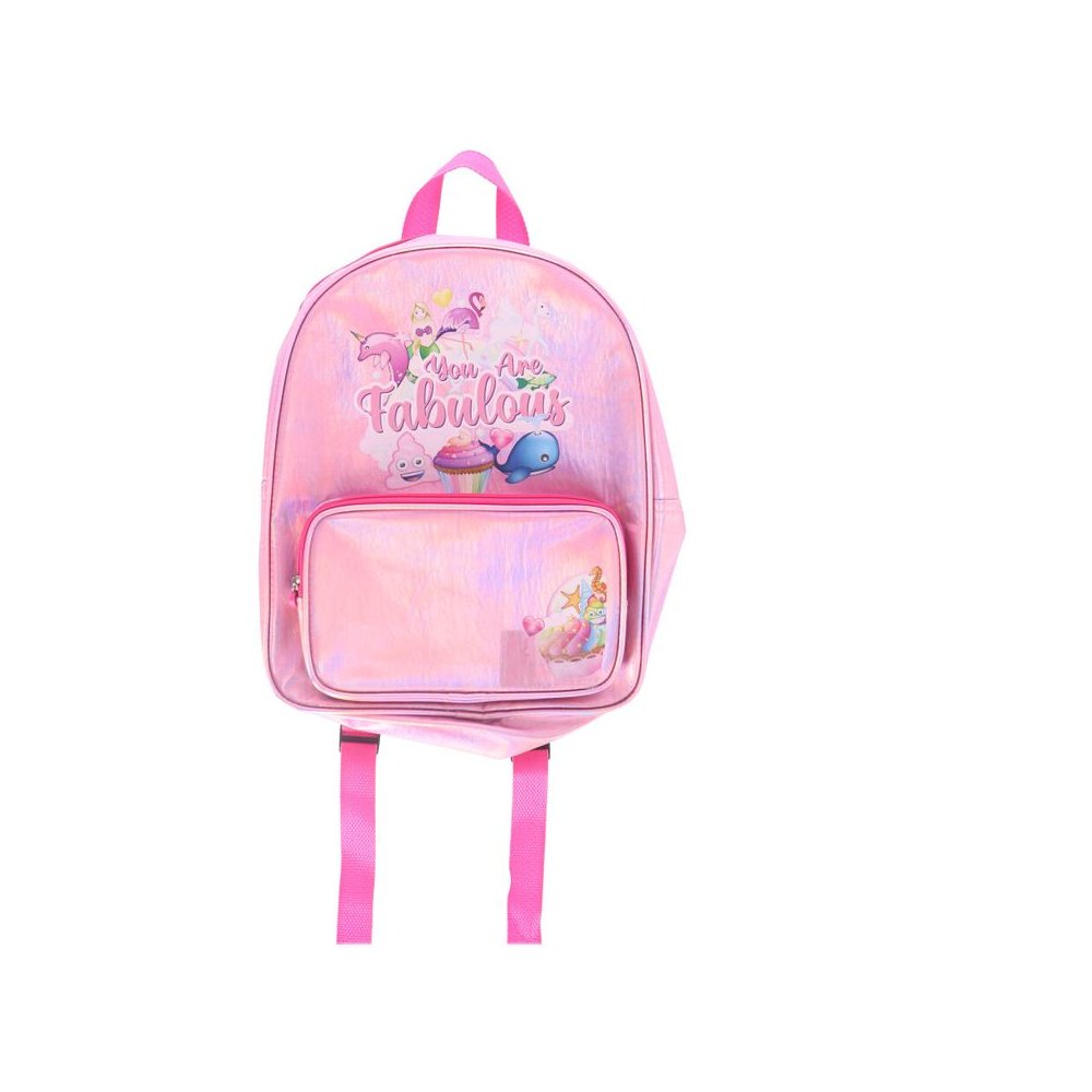 Rugzak Shiny Pink Fabulous is een roze rugzak met print van o.a. eenhoorn, zeemeermin en flamingo emoji’s. De rugzak heeft een groot vak, voorvak en verstelbare banden. Geschikt voor kinderen vanaf 3 jaar.