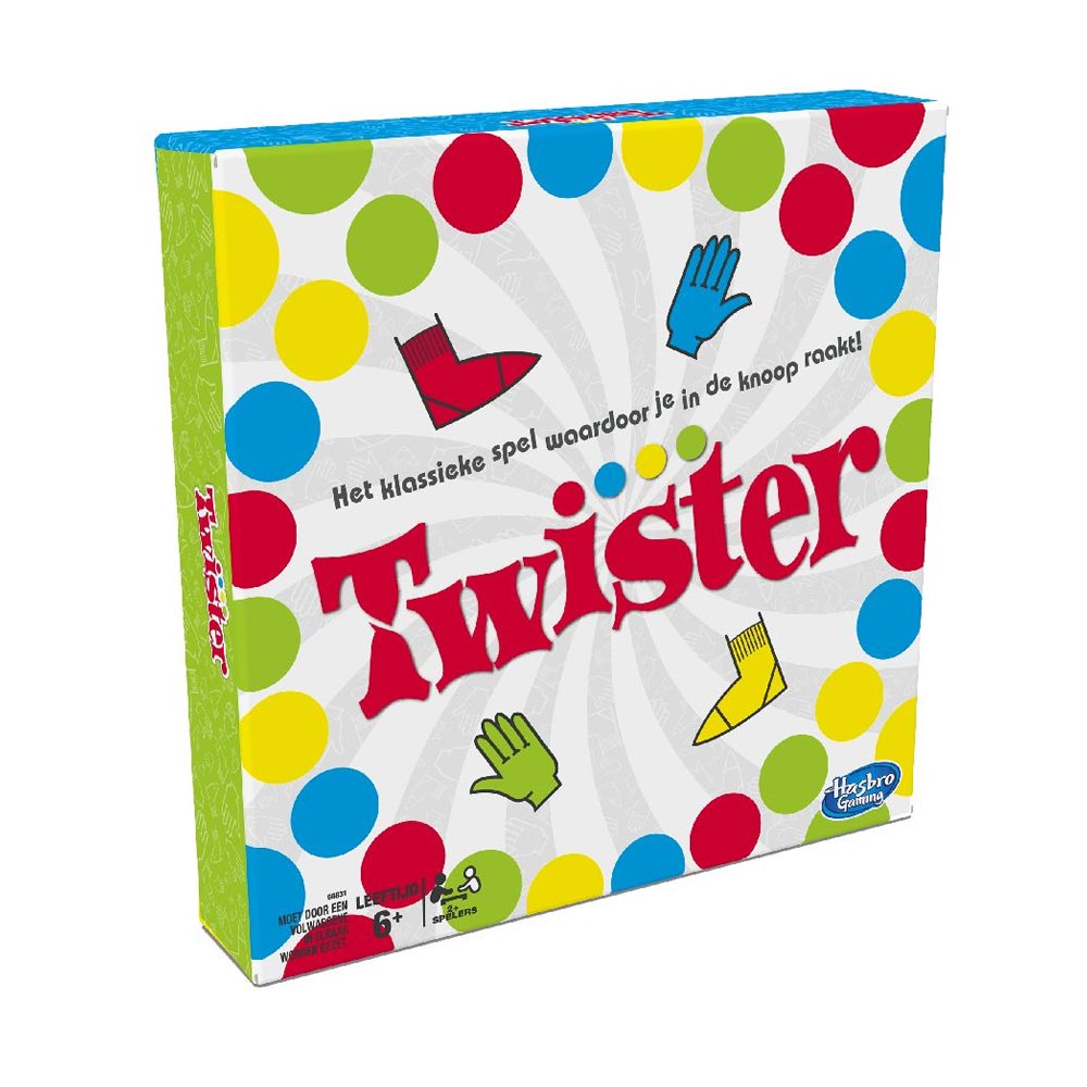 Voeg plezier toe aan een feestje of familieavond met dit klassieke spel dat spelers in de knoop legt! Eén persoon geeft een draai aan de draaiwijzer, en zie wat er gebeurt wanneer de spelers hun handen en voeten op de mat proberen te houden! Rechtervoet op rood! Wie kan het? Linkervoet op groen: wie heeft het onder controle? Als de knie of elleboog van een speler de mat raakt of hij of zij valt om, dan ligt ‘ie uit het spel. De speler die als laatste overeind blijft, is de winnaar!