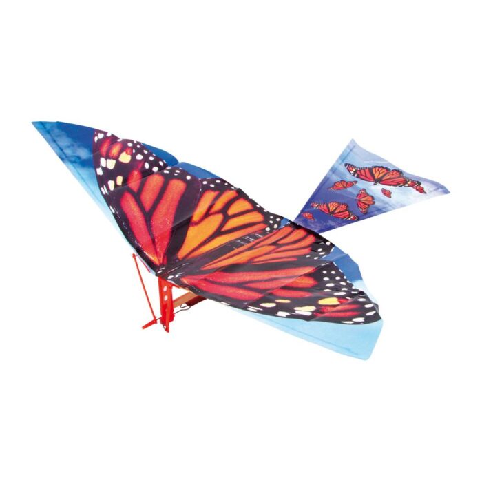 Een set van 4 schitterende vliegende vlinders. Deze vlinders kunnen vliegen door middel van een aandrijving met elastiek. De vlinders zijn voorzien van prachtige kleuren combinaties en vormen een lust voor het oog. Laat de vlinders vliegen en aanschouw hoe fraai ze zullen fladderen! Je waant jezelf werkelijk in een levensechte vlindertuin!