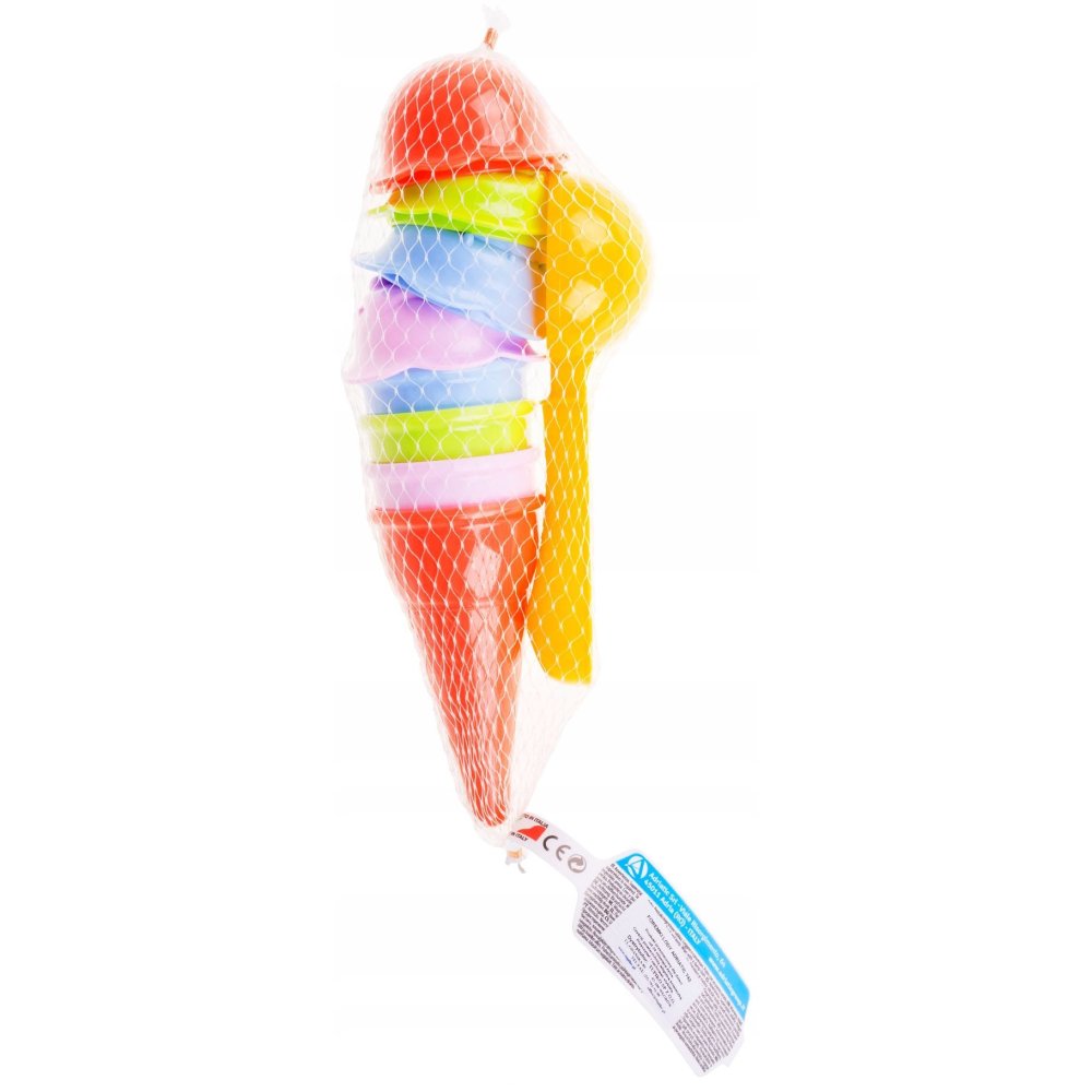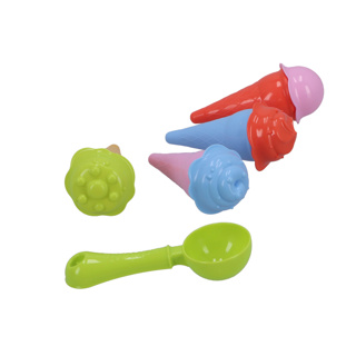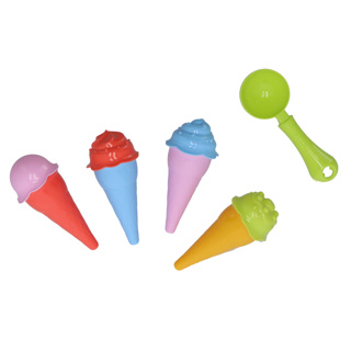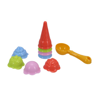 Kunststof ijshoorntje met ijsschepje en vormpjes om ‘bolletjes ijs’ mee te maken. Perfect zandspeelgoed voor in de zandbak of op het strand. Geschikt voor kinderen vanaf 3 jaar.